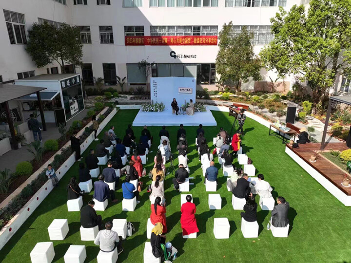 麟界点空间用“阅、享、会、创”四个创意字体作功能区隔,通透精巧。此外,麟界点还设有会客区“爨乡拾梦”空间,该区的设计灵感来源于“爨文化”,散开来的“爨”字,看似各自独立,确也环环相扣,颇具韵味。在分享交流区的屋顶,瞬间就吸引了很多读者,原来,星空屋顶设计理念十分独特,它以徐霞客游历南盘江的主线勾勒出的曲靖4A级景区及麒麟区主要景区游线星空图,每一个景点都如同一颗夜空中闪耀的明星,相互串联成一个“麒麟星座”。麟界点空间里还设有文创区,文创区的背景板是《徐霞客游记·盘江考》摘录的透光字,展示区里,来自麒麟区的非遗手工或文创产品陈列,读者可以把玩和选购。