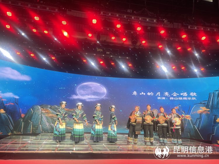 新闻发布会现场,动人的彝族歌曲展演