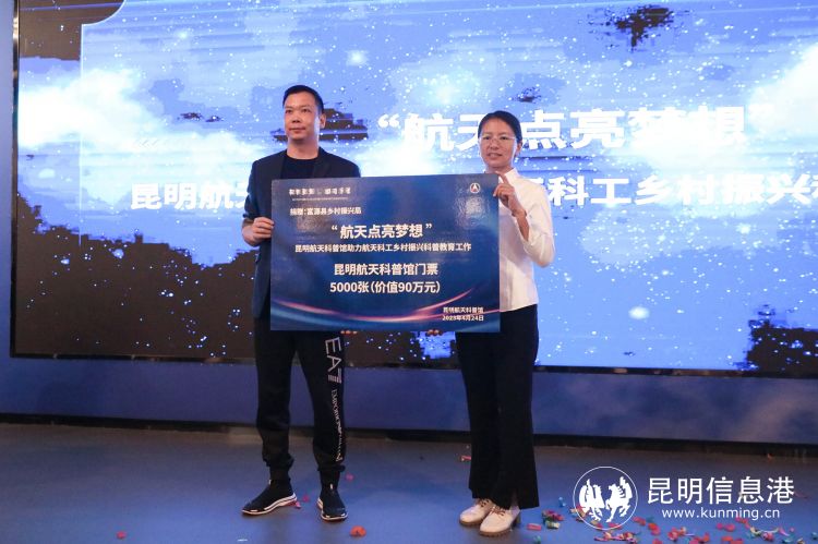一直以来,提升云南省乡村青少年的航天科学素质是航天科创和昆明航天科普馆的共同愿望。活动上,昆明航天科普馆分别向云南省乡村振兴局、东川区乡村振兴局、富源县乡村振兴局捐赠昆明航天科普馆体验门票15000张,共计270万元人民币。