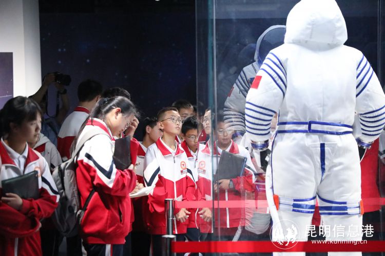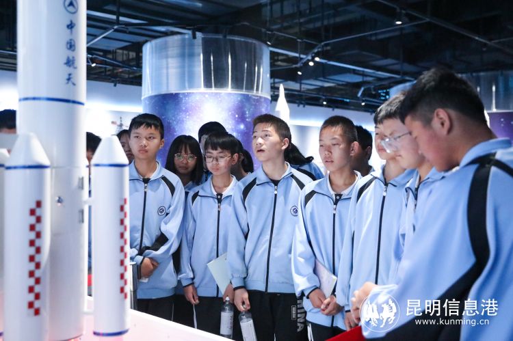 参加研学活动的青少年走进昆明航天科普馆,近距离感受中国航天魅力