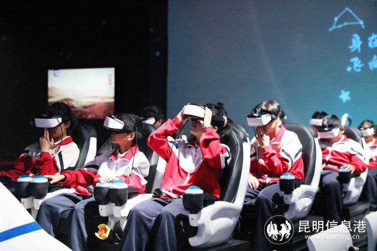 参观研学的青少年体验飞船VR
