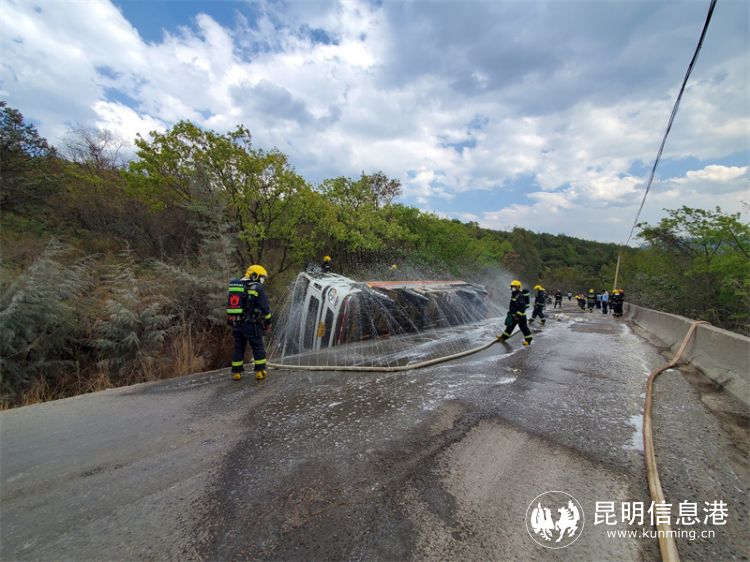 15时05分,富民消防救援大队接到报警后,立即调派4车14人前往处置,并立即上报警情信息至昆明消防救援支队指挥中心、富民县应急管理局,同步启动应急预案,联动公安交警部门、120急救中心以及相关专家技术人员到场处置。