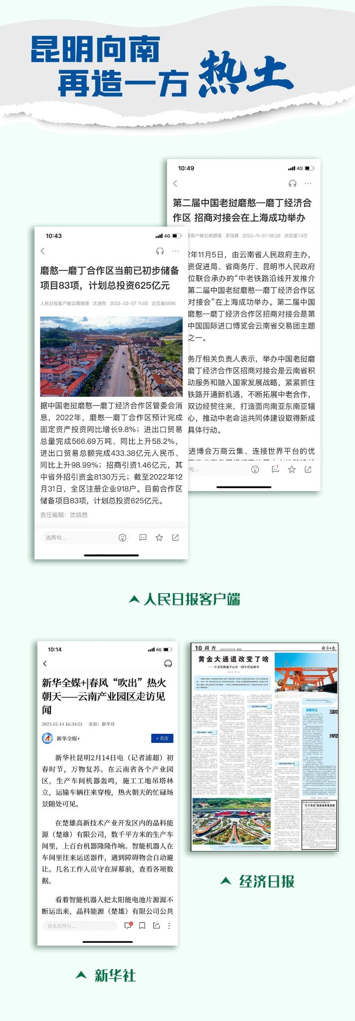 《昆明托管磨憨共建国际口岸城市》一文在结尾写道:未来昆明将一体推进口岸功能提升、口岸经济发展、口岸城市建设,加强与南亚东南亚的贸易往来和经济合作,在构建新发展格局中展现昆明作为、作出昆明贡献。(掌上春城综合整理 素材来源:新华社、人民日报客户端、央视网、中国新闻网、经济日报等 图片来源:新华社、工人日报、昆明日报资料图等)