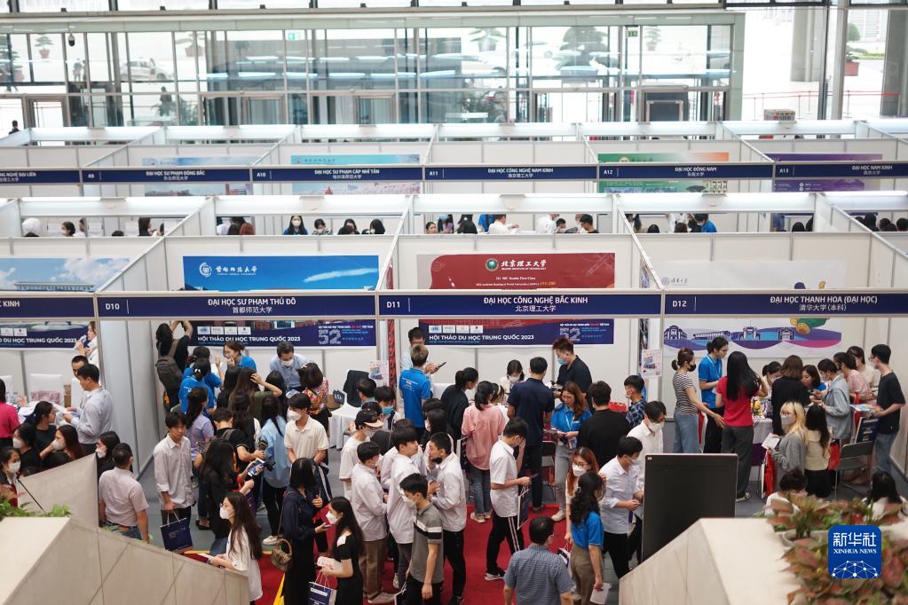 4月22日,在位于越南首都河内的国家会议中心,留学咨询者络绎不绝。新华社记者 陶军 摄
