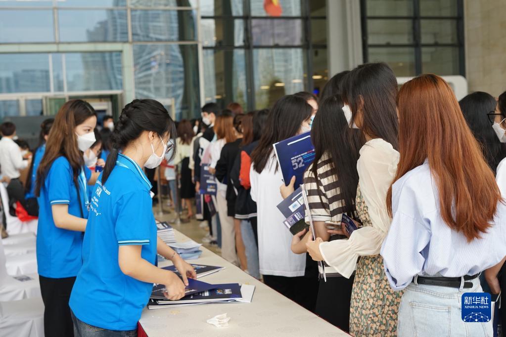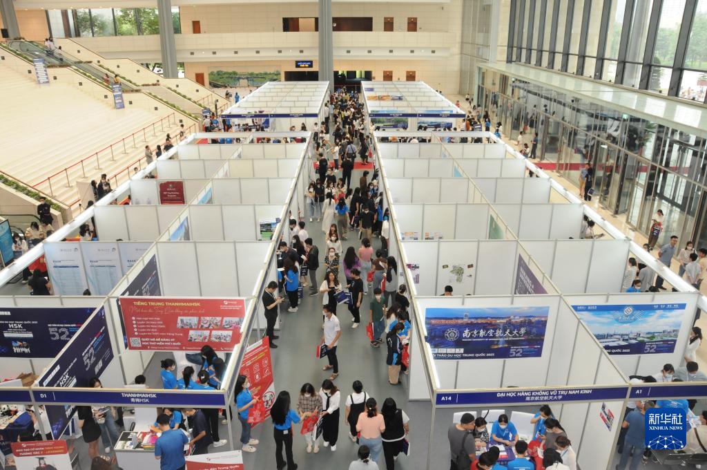 4月22日,在位于越南首都河内的国家会议中心,留学咨询者络绎不绝。新华社记者 胡佳丽 摄