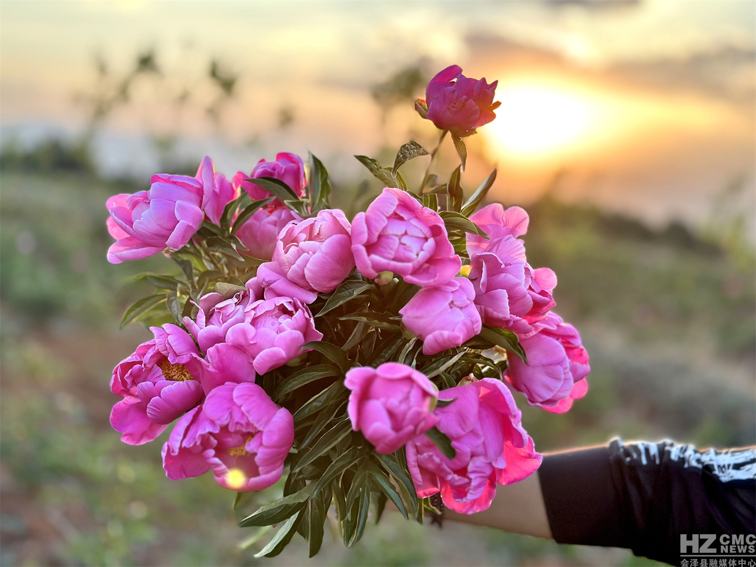念念不忘,必有回响。昨天下班后,几个闺蜜一拍即合,说走就走,奔赴一场“临时起意”却是“蓄谋已久”的花事之约。从会泽县城出发,一个多小时的车程就到了者海镇盖胜村芍药种植基地。一下车,映入眼帘的便是错落有致的芍药地,驻足细看,一簇簇,一丛丛,全是粉粉嫩嫩含苞待放的花蕾,偶有一片盛放的花,让人眼前一亮,那绯红的花瓣,金黄的花蕊,在夕阳下更显卓尔不群,绚烂中透着灵气,华贵中蕴着妩媚。四溢的幽香,引来了三三两两的小蜜蜂,在花从中嗡嗡地飞着,迟迟不肯离去,一如流连忘返的我们,不停地采摘、拍照,宛若置身世外桃源,不由得心生欢喜,怡然陶醉。