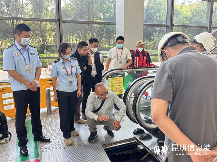 昆明市市场监督管理局空港分局执法人员重点检查了电梯是否办理使用登记,是否在定期检验合格有效期内,是否张贴了检验合格标志,电梯的安全警示标志、安全注意事项等是否置于显著位置,电梯是否按期进行维护保养,是否制定了应急预案并进行了演练等。特检院专家对电梯急停开关、防夹门装置、制动器状态监测开关、梳齿板、踏板缺失监测装置等进行专业检测,检验结果均符合标准。