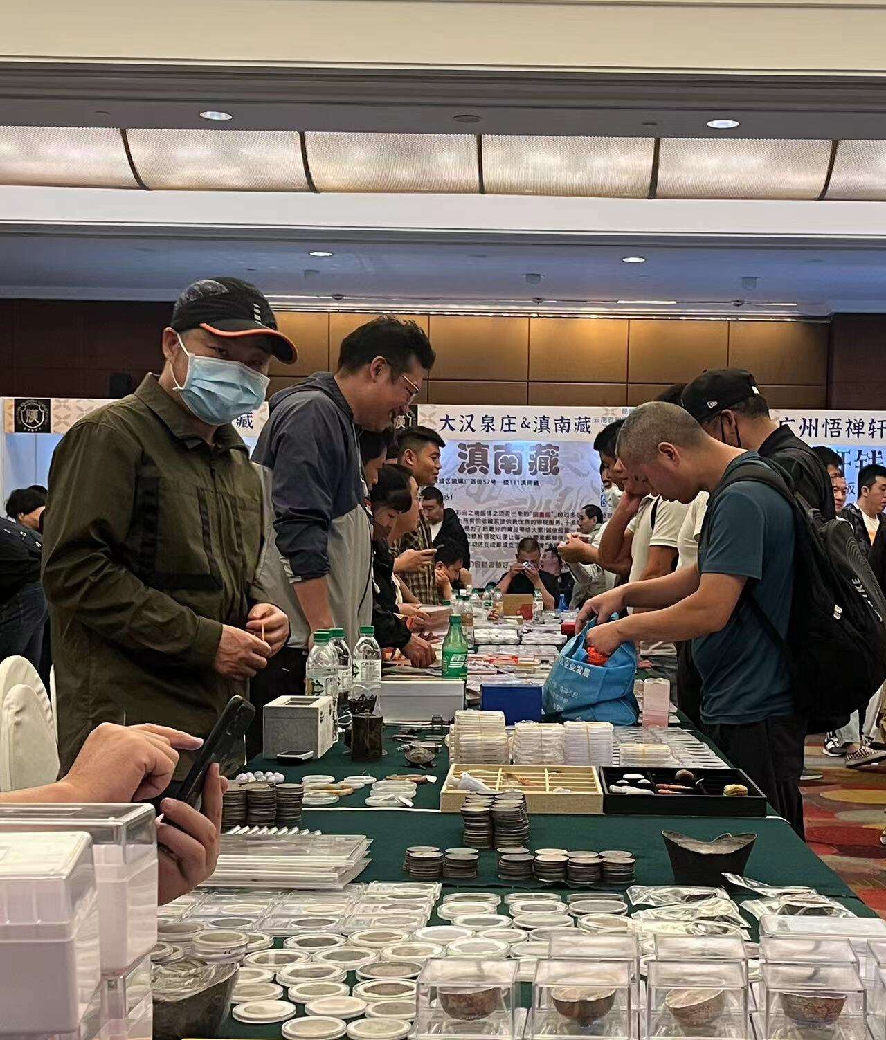 25日,一整天的现场交流会,吸引了北京大晋浩天国际拍卖公司、广州悟禅轩钱币、大汉泉庄、滇南藏、壹生追求、方乾评级、福禄堂-云南幽泉、黄铜滇、古玩今玩、云中之龙、G-U-O老银元等80余家钱币参展商摆摊交流,从历代行用钱币、厌胜花钱,到铜元、银元、银锭、像章、铜杂等,收藏品琳琅满目,交流积极踊跃,交易十分火爆。
