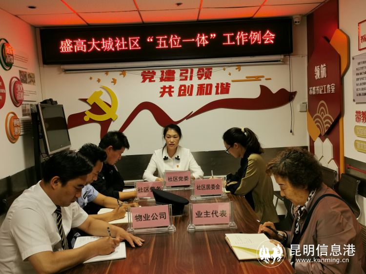 盛高大城社区”五位一体“工作例会,与居民沟通交流。