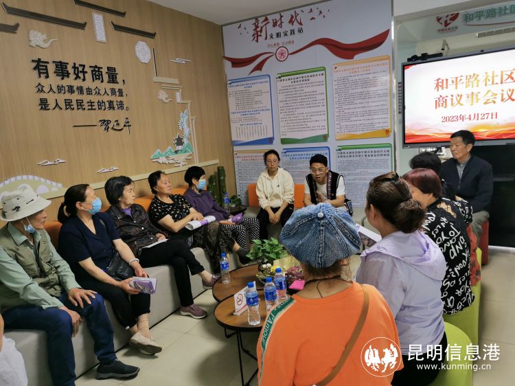 自2018年起,和平路社区作为昆明市基层协商民主试点社区,大力实施“协商在基层”活动,推动和平路社区完成从“鸡毛蒜皮”的居委会管理到“一核多维”的社区治理的转变。社区建立协商民主“一中心四平台”(即和平路社区协商议事中心百姓会客厅,春华天井议事会、夏荷议事亭、秋实议事阁、冬青议事园),分层级广泛开展协商议事活动。