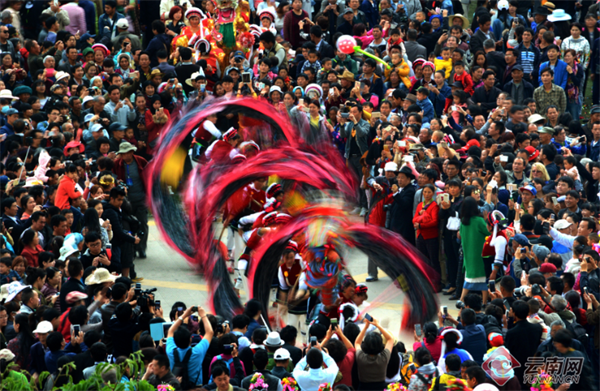 每天组织4支白族绕三灵队伍、龙队、狮队,在大理古城北门——大理古城文化馆——大理古城南门——武庙会——古街场大青树——洞经古乐台进行游演和定点表演。