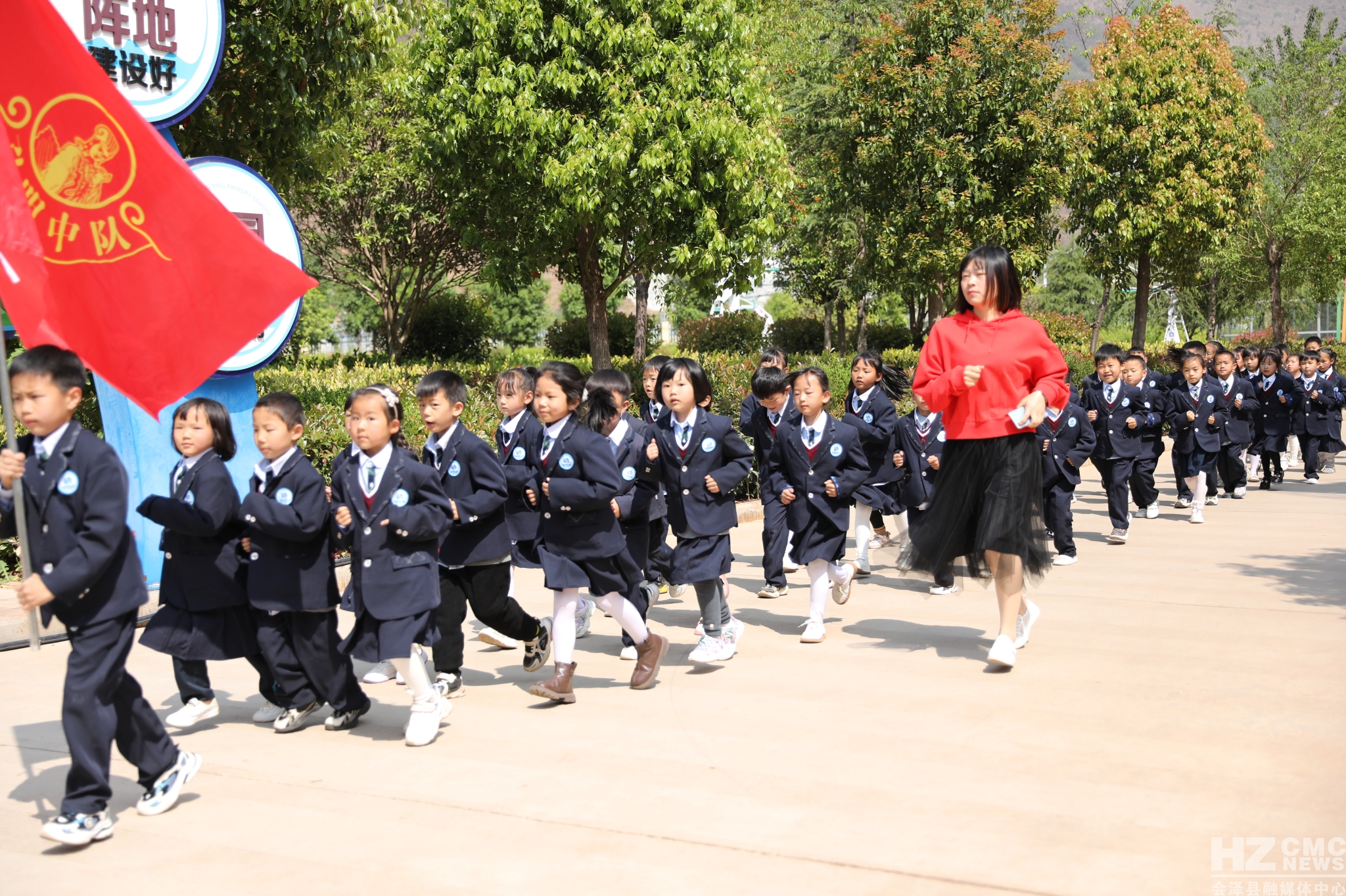 跑操中,以英雄名字命名的各中队,在队长的带领下,高呼着嘹亮的口号,迈着铿锵有力的步伐,迎着鲜艳的队旗,围绕各自的目标跑步前进,形成了校园内一道靓丽的风景线,展示出钟屏学子朝气蓬勃、拼搏进取的精气神。
