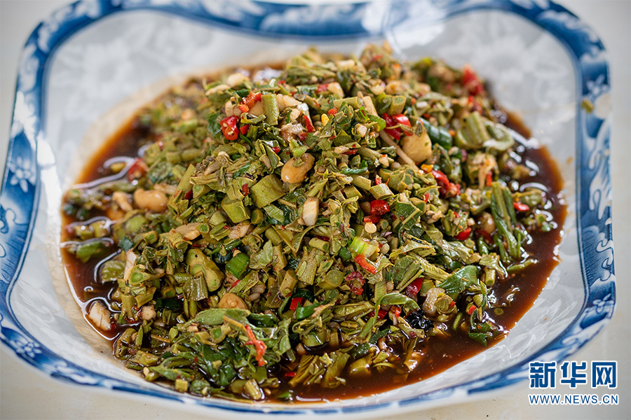 凉拌香椿(3月21日摄)。新华网发(洱源县融媒体中心 供图)
