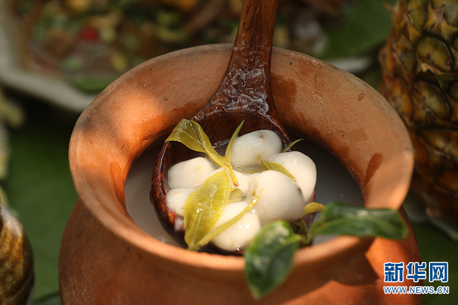 春茶煮汤圆(4月9日摄)。新华网发(景谷县融媒体中心 供图)