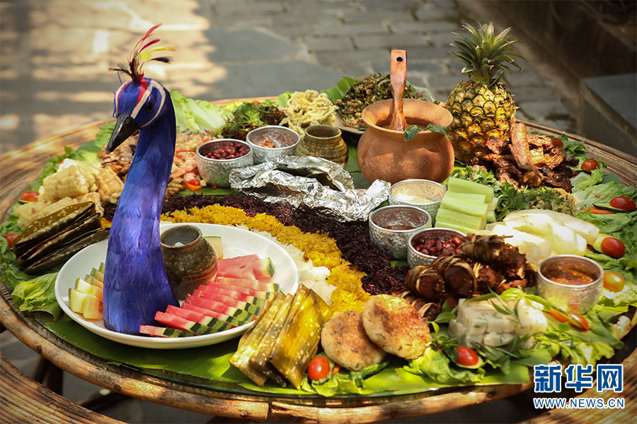 包含春茶饭团、茶糕点的手抓饭(4月9日摄)。新华网发(景谷县融媒体中心 供图)