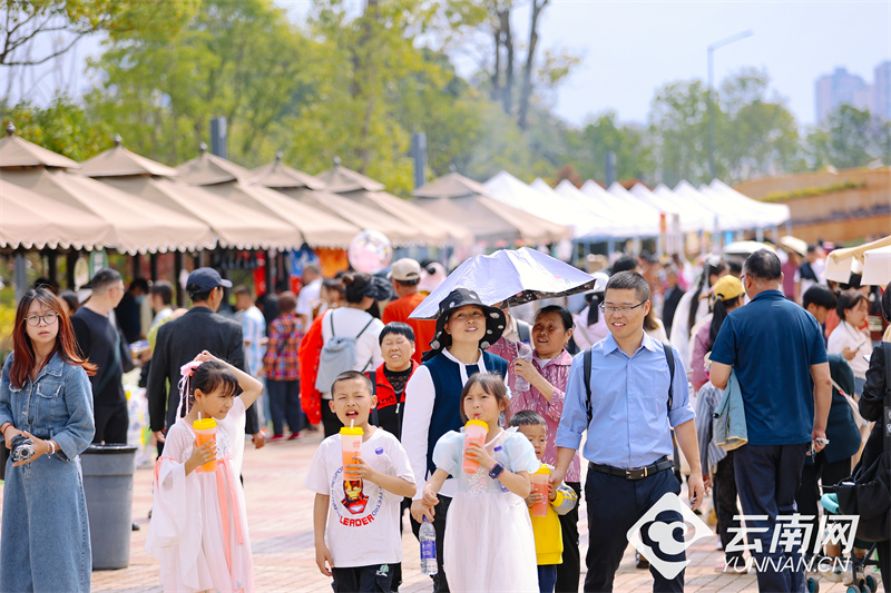 在温泉广场,十二花仙摇曳着轻盈的身姿翩翩起舞,向观众传递着十二月花神的祝福;孔雀绿雕下,活泼可爱的小丑和孩童们嬉戏打闹;花园大道上,花花市集、花吃街人潮涌动,人们逛市集、购好物、尝美食,玩的不亦乐乎;棕榈林里,乐队轻唱民谣,伴着动人的音乐在林下“躺营”,深深地“躺”进大自然里;跟随花艺美陈前往树木园,打卡馥郁馨香的百合花田……这个“五一”,世博园内处处荡漾着“花”的美好讯息。(云南网 记者胡妤雅)