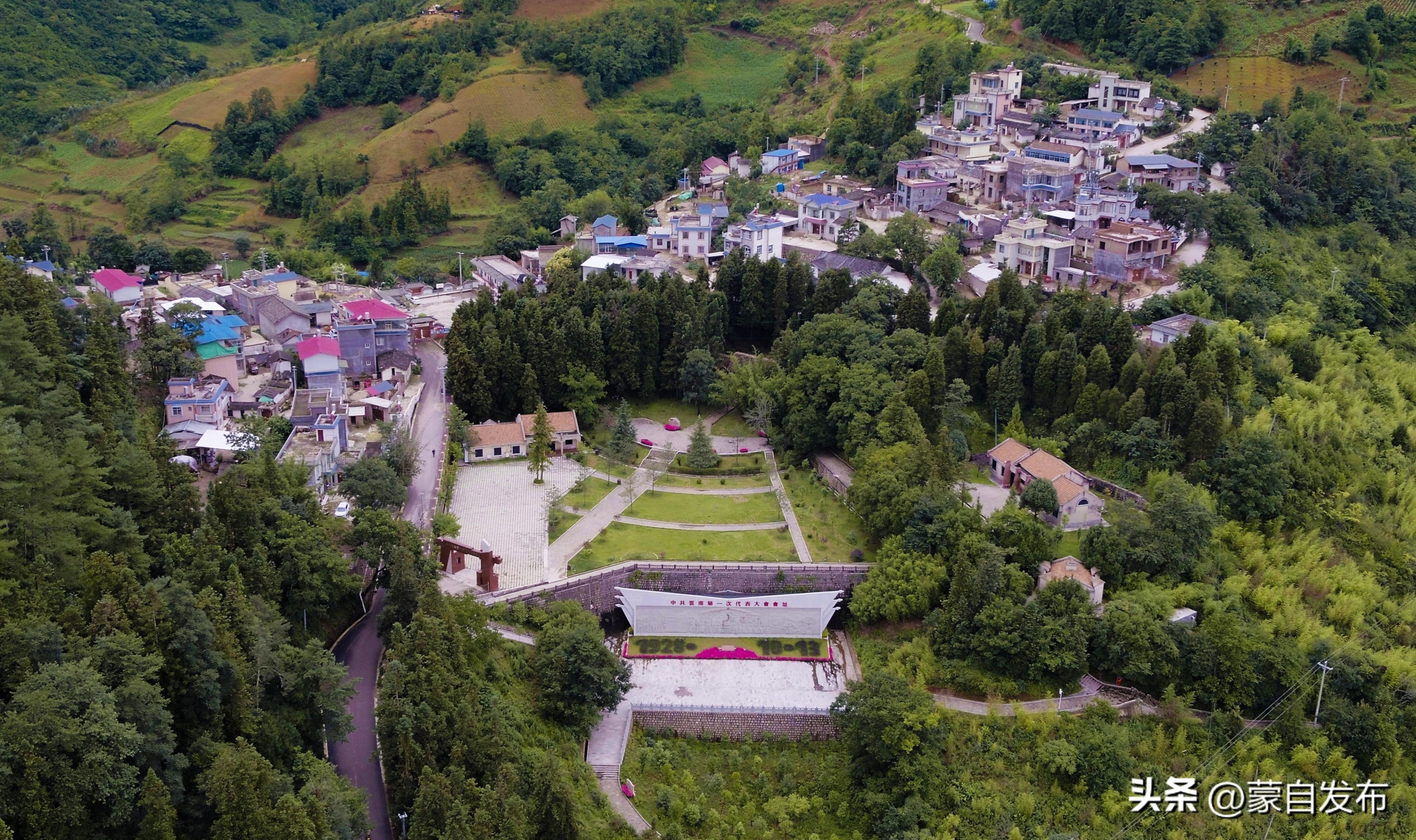 景区新种植比利时杜鹃 1050 余株,重新铺设绿化草坪 1810 平方米,在会址介绍石碑前种植粉色美女樱1000 余株,植物种类达44种34141余株,绿化率达96.46%。“景区部分用地坡度较陡,我们利用现有地形建设景观节点和旅游步道。浮雕墙前的绿化,采用独特的‘梯田式’设计,减少了对地形的破坏,层层叠进的景观,也象征着革命道路上的曲折艰辛。”蒙自市历史文化景区管理中心副主任殷惠萍说。