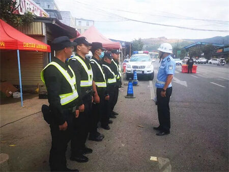 发动辖区“红袖标”志愿者参与巡逻防控工作。