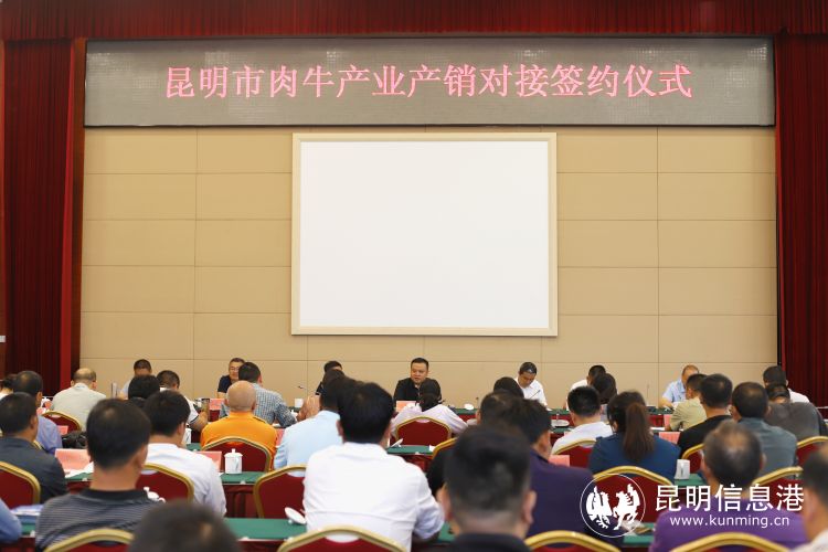 5月6日下午,昆明市绿色食品产业链办公室组织召开市肉牛产业发展座谈暨产销对接洽谈会。图/尚渭栩摄