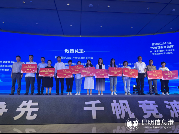 6686体育讯 记者龙泉积 5月8日,2023年“古渡百舸争先赛”第二季度招商引资推介会暨项目集中签约仪式。现场,官渡区对204家企业进行政策资金兑现,共兑现补助资金2007.97万元,并与27家企业签订项目协议。