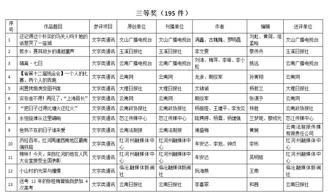 根据《云南新闻奖评选办法》规定,现将评选结果在云南网、云南记协网进行为期5个工作日的公示,欢迎社会各界监督、评议。云南记协评选办公室将认真受理,对有关举报进行认真核查。