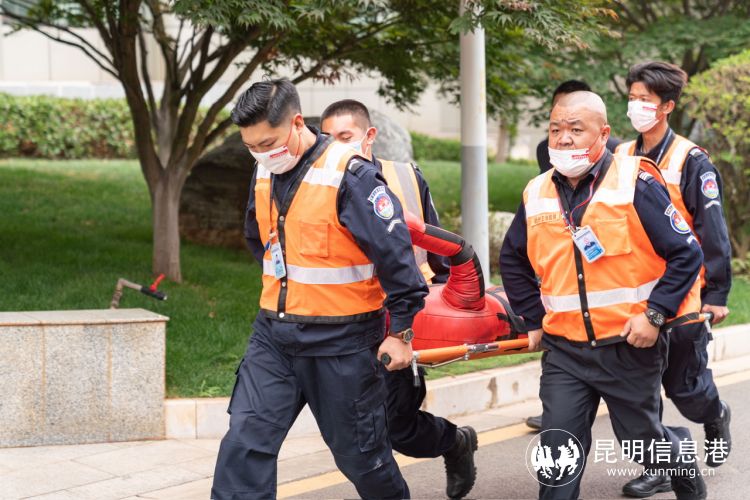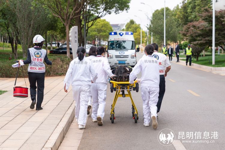 昆明机场场区疏散组及时就位,安排指引人员引导疏散,在集结区域设置疏散点,并完成临时指挥点和医疗救护点搭建工作,做好现场车辆、人员秩序管控,避免危险蔓延及次生危害发生。针对房间冒烟、人员受困和受伤等紧急情况,机场消防接报后分别出动5辆消防车立即赶赴事发地点,进入事发区域进行人员搜救和火情处置。急救车辆、医护人员迅速到位,准确定位4名伤员,并进行安全转移及专业救治。