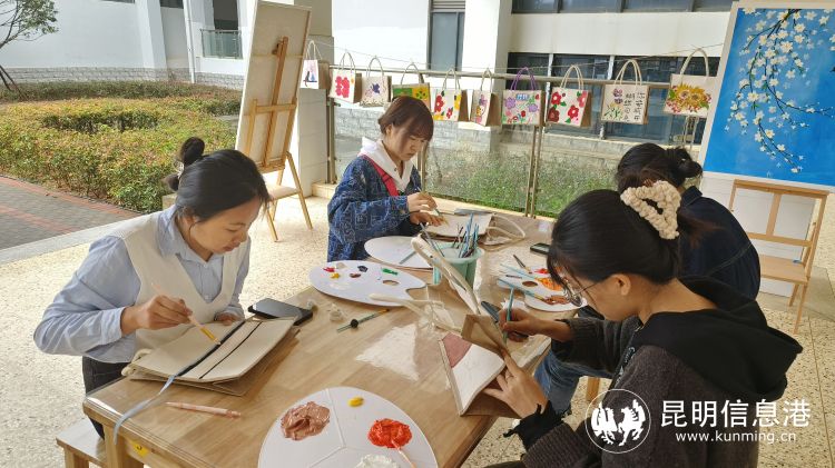 学前教育专业学生现场手绘创作团扇和小背包