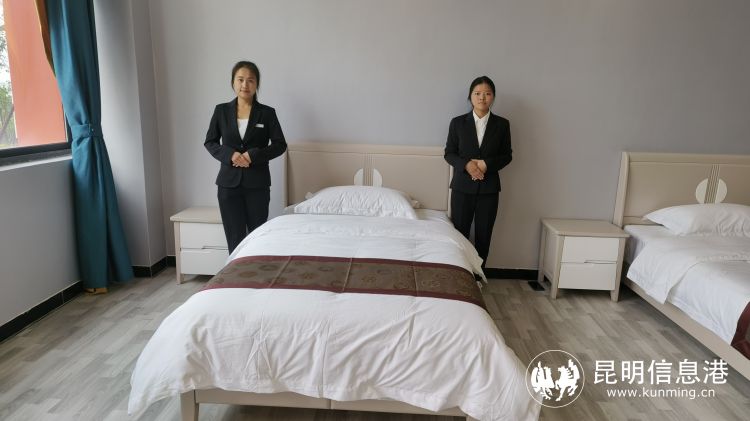 酒店管理专业学生进行床铺整理