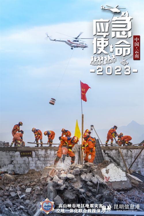 5月16日,国务院抗震救灾指挥部办公室、应急管理部、云南省人民政府在云南省丽江等地联合举行高山峡谷地区地震灾害空地一体化联合救援演习,代号“应急使命·2023”。