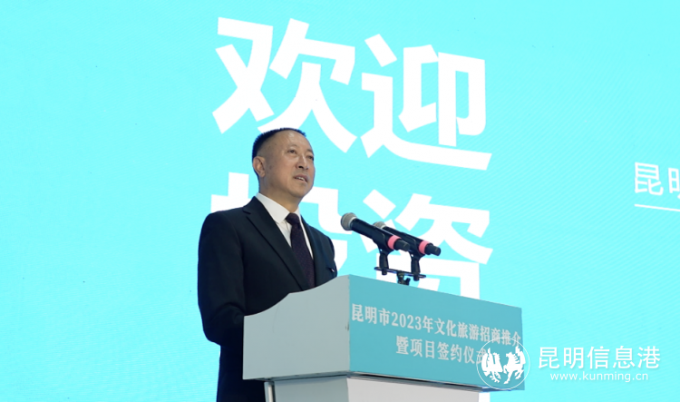 昆明市文化和旅游局局长杨明俊向参会嘉宾做了文化旅游招商推介 摄影/ 王梓宇