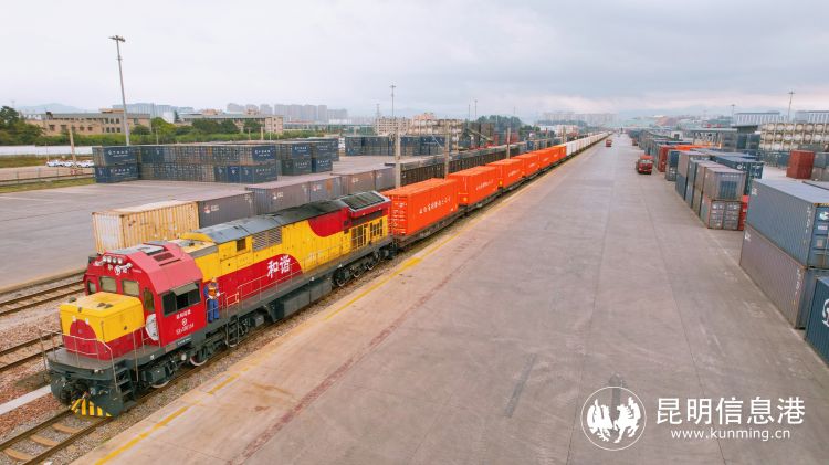 王家营西中铁联集昆明中心站,中老铁路国际货物列车从这里出发,驶向老挝。杨紫轩 摄