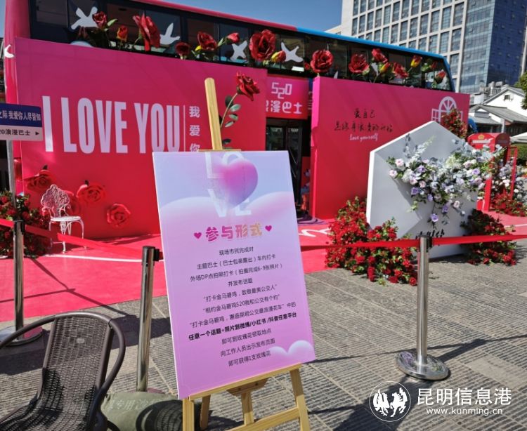 伴随着公交乐队优美的音乐,活动第二阶段 “爱的表白”打卡互动活动正式开始。现场邀请公交粉丝和市民,完成对主题巴士、车内打卡、公交车模拍照打卡,并发布话题:“打卡金马碧鸡,致敬最美公交人”“相约金马碧鸡,520我和公交有个约”“打卡金马碧鸡,邂逅昆明公交最浪漫花车”+照片到微博/小红书 /抖音任意平台,到玫瑰花领取地点,向工作人员出示发布页面,即可获得1支玫瑰花。