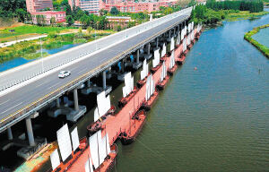 滇池绿道浮桥位于高海高速桥下空间段,连通绿道北段与南段,是云南首座钢浮桥。浮桥在规划时,将当地昔日“高峣古渡”的文化特色融入设计元素之中,采用船形设计,展现渔家码头场景和滇池渔文化,一面面风帆成了钢浮桥上的景观标志。施工单位中建六局项目部相关负责人介绍,船帆共悬挂63张,选用PTFE网格布缝制而成,透风、耐高温和腐蚀;船面采用户外浅碳防腐重竹地板铺设,防腐防晒、美观环保。(昆明日报全媒体记者:吴劲松)
