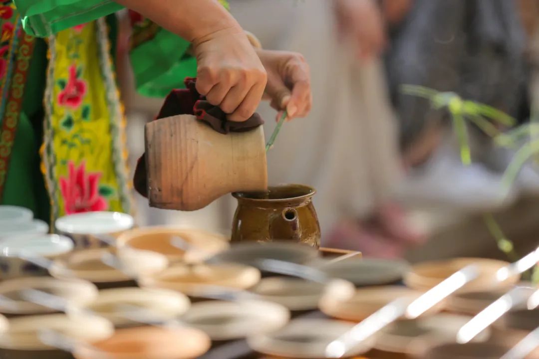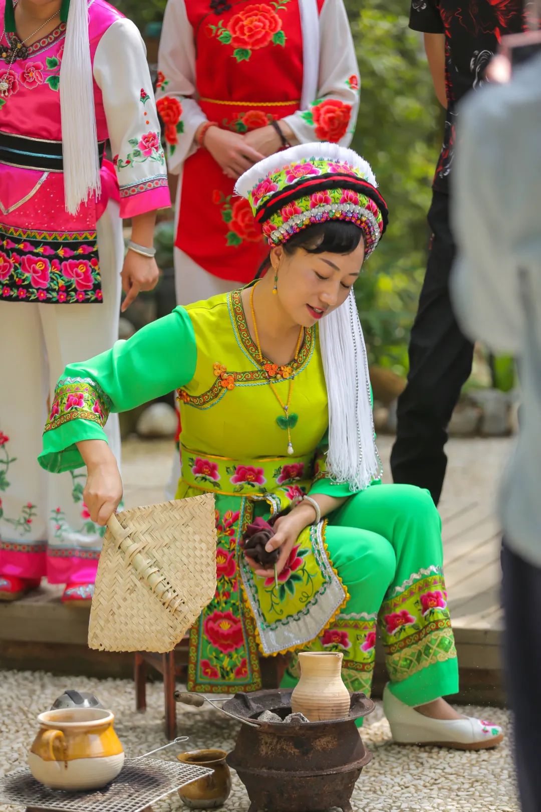 第三道是“回味茶”。用蜂蜜加上花椒、姜、桂皮,兑上茶水煎制,甜麻香辣,回味久长的“回味茶”就做好了。桂皮性辣,在白语中,“辣”与“亲”同音,“姜”与“富”同意,此道茶饱含祝福之意。