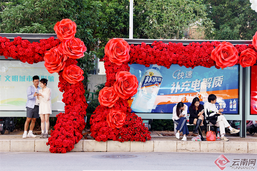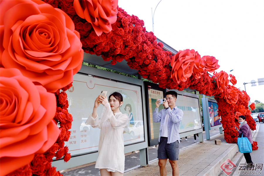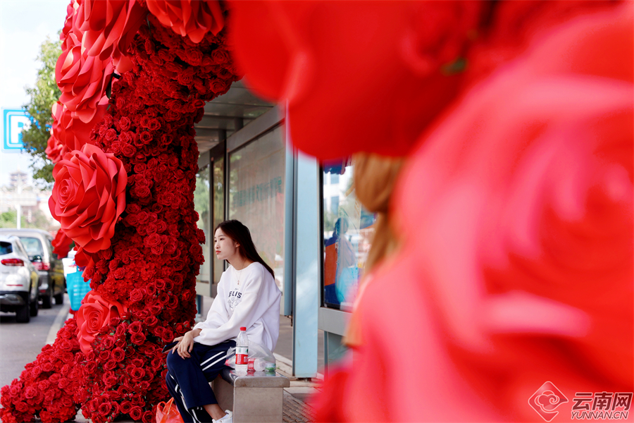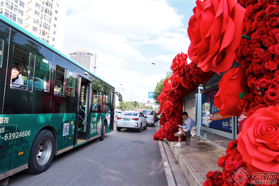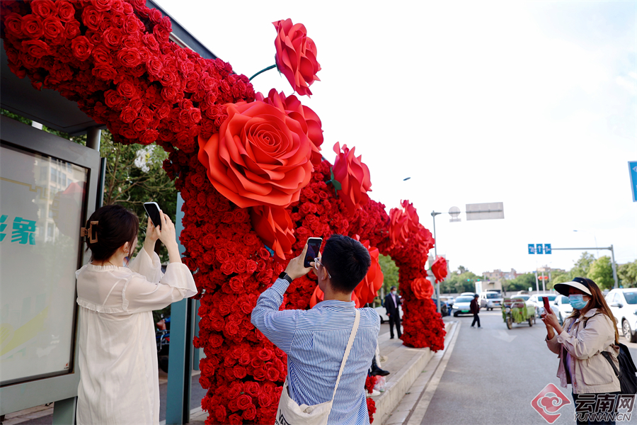 连日来,斗南花市周边的多个鲜花站台成功出圈,成为春城市民和游客争相打卡的夏季浪漫景点。近日,呈贡又一座公交站台“开”满了火红而炙热的玫瑰,走进铺满巨型玫瑰的“斗南花市东”站,昆明专有的浪漫和热情扑面而来。