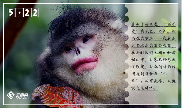 滇金丝猴是云南最具代表性的珍稀濒危野生动物之一