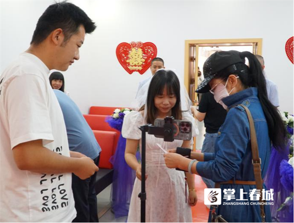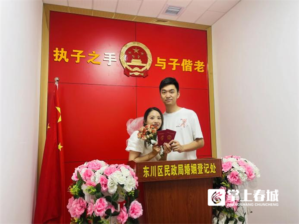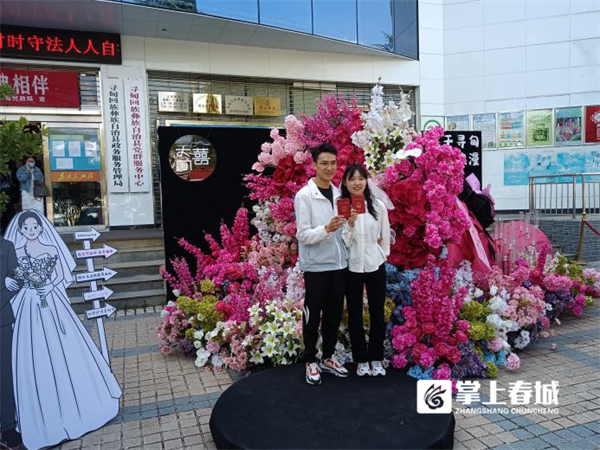 “整个办理登记流程流畅便捷,之前没有在网上预约抢到号,还担心要排很长时间队,但到了现场,各个环节都有志愿者和工作人员主动引导服务,所以我们在很短时间就办完了手续。”特意和爱人穿着情侣服来领证的邹先生高兴地说。