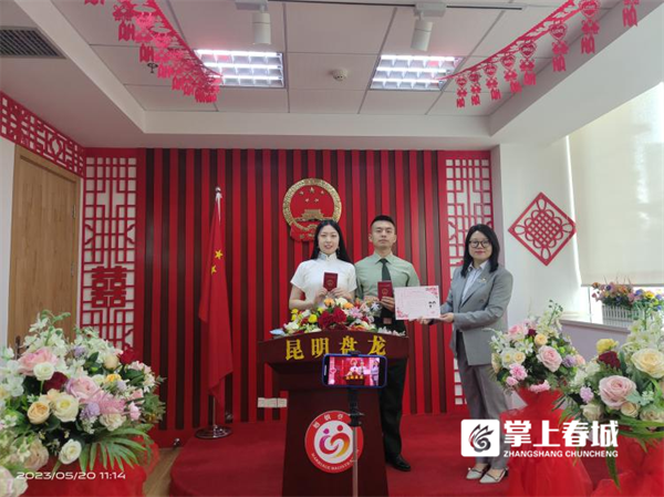 说起5月20日人气最旺的地方,政务服务大厅民政婚姻登记处绝对是其中之一。今年的“520”恰逢周六,为满足广大新人办理结婚登记的美好愿望,昆明市政务服务系统大力弘扬“马上就办、真抓实干”的工作作风,14个县(市)政务服务中心提前发布了“520”预约办理婚姻登记业务公告,全城为“爱”加班,确保婚姻登记高峰日服务工作高效有序完成。据介绍,5月20日当天,全市14个县(市)区政务服务中心共为1136对新人办理了婚姻登记。