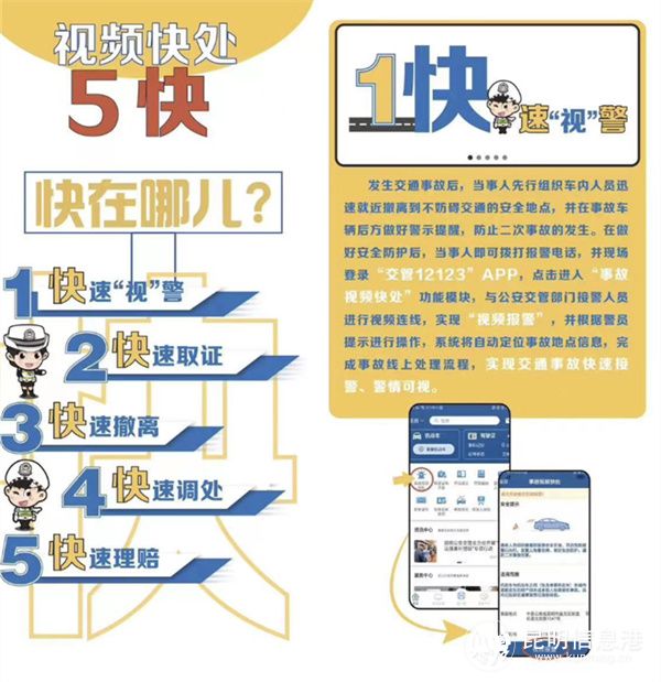 据介绍,“轻微交通事故线上视频快处”主要基于视频通话技术,发生交通事故后,当事人可以采用在线视频报警处理,通过“交管12123”APP与公安交管部门接警员视频连线,在线完成交通事故信息采集、证据固定,并引导当事人撤离现场后远程推送责任认定,实现快速“视”警、快速取证、快速撤离、快速认定、快速理赔,减少群众在现场停留时间,缓解交通拥堵,降低二次事故概率,最大限度为群众提供便捷服务。