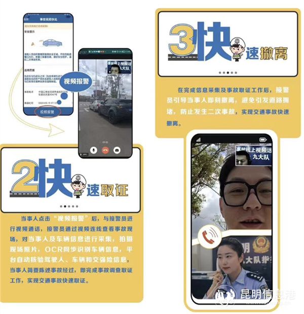 6686体育讯 记者合宇聪 5月25日,云南省公安厅交通警察总队召开新闻通气会,会上介绍,今年6月1日起,昆明市主城区将正式推行“轻微交通事故线上视频快处”,实现“视”警、取证、撤离、认定、理赔五个环节的提速。5月16日以来,昆明主城区前期试点期间共视频快处道路交通事故258起,平均处置时间仅为5分钟。有效解决轻微道路交通事故“协商难、撤除慢、易拥堵、不安全”的问题。