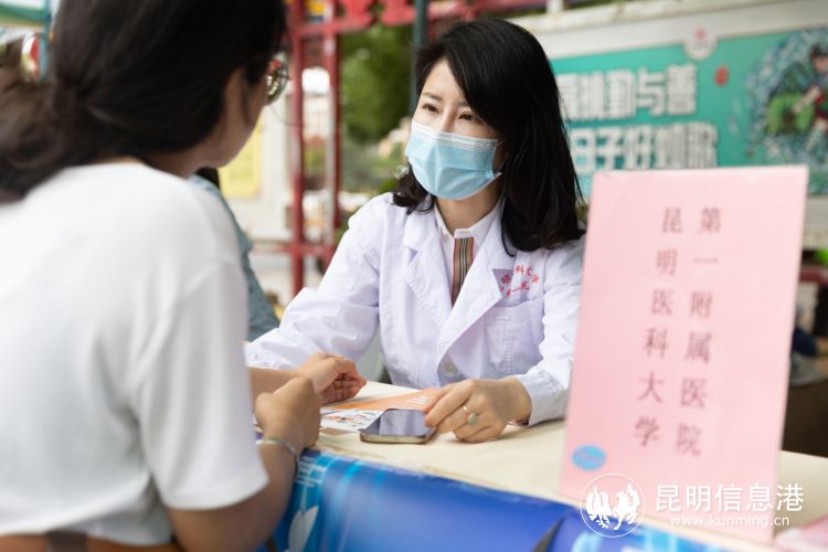 昆明医科大学附属口腔医院口腔预防科主任、博士生导师李艳红,结合着生动活泼的科普宣传视频,围绕着口腔疾病分类、自我口腔保健方法及牙膏的选择和使用等内容开展了详细实用的科普讲座。昆明医科大学第一附属医院皮肤科专家顾华到现场开展义诊,向到场咨询紫外线过敏、荨麻疹的居民提供了耐心、专业的问诊建议和治疗方案。
