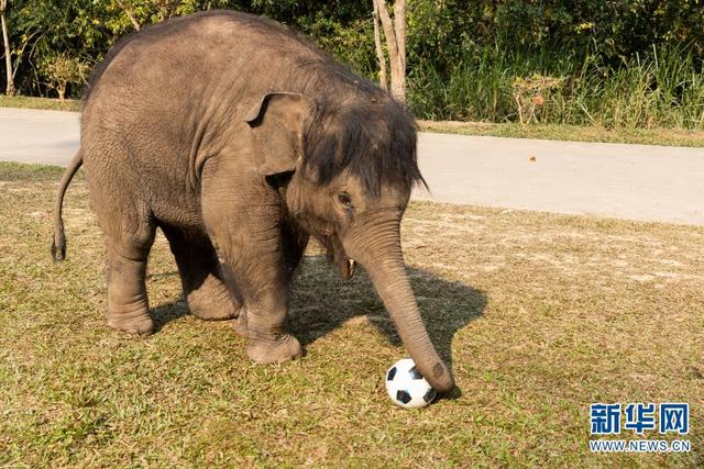 救助象“龙龙”正在展示自己的踢球能力(3月11日摄)。新华网 刘云 摄