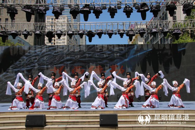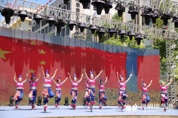 上午的演出,在管乐合奏《唱支山歌给党听》中拉开序幕,彝族舞蹈《样样好》、苗族舞蹈《嘎迪朶》、藏族舞蹈《天路》、白族舞蹈《蝴蝶泉边阿达哟》、基诺族舞蹈《基诺鼓舞》等一支支民族舞蹈悉数呈现,原汁原味的民间文艺节目让市民游客领略了七彩云南的民族多样性,以及民间艺术的无限魅力。下午的演出更是精彩不断,花灯歌舞《两学一做树新风》《花灯之乡呈贡美》《欢天喜地闹花灯》《荞麦花开》,时尚走秀《魅力飞扬》等近30个节目,都保留了民间艺术的原生态,演员们跟着音乐的节奏尽情舞蹈,现场观众掌声赞叹声不断。现场的市民、摄影爱好者们纷纷举起手中的手机、相机,用镜头记录下一幕幕精彩瞬间。
