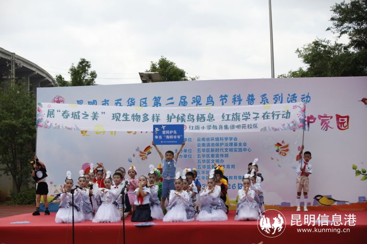 作为一所以观鸟为特色的学校,五华区红旗小学教育集团西翥二小校区依托学校周边丰富的生态资源,将观鸟爱鸟、爱护自然的生态文明理念融入教学实践,打造观鸟特色课程,让爱鸟成为校园生活主题词,校园中不仅设置了爱鸟护鸟生态展板,还有鸟类科普走廊、鸟巢模型等,一点一滴间将爱鸟护鸟的知识播撒到学生心中。“观鸟节活动既为观鸟人搭建了相互交流、相互提高的平台,又广泛宣传了保护鸟类的生态文明理念,我们学校通过观鸟这一载体推动校园生态德育建设,同时也推动全社会践行新时代生态文明理念。”学校负责人介绍。