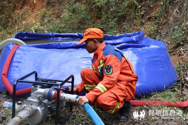 山势高差大,单台消防车、手抬机动泵无法供水达到相应高度,则选用水囊/斜坡水池中转或便携接力泵接力的方式进行供水,使用的便携机动泵重量约12Kg,配备40型水带,理论扬程220m,且具备“耦合”接力供水功能,能够满足高海拔林区供水作业。