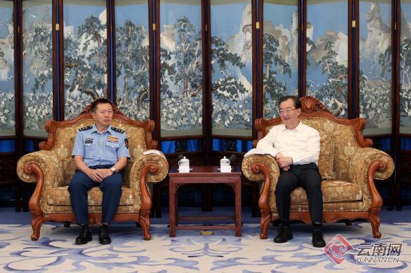 省委书记王宁与率队调研的全国双拥工作领导小组副组长、中央军委政治工作部副主任王成男中将一行进行工作交流。记者 周灿 摄