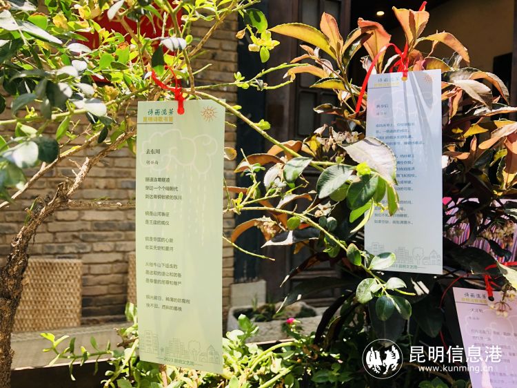 活动当天,70首昆明诗人写昆明的优秀精短诗歌制成的400个彩色书签,在马家大院周边布置出一条挂满诗歌的“诗街”,让人徜徉其间,喜好者还可随意取走,饱览诗意昆明,畅享精神大餐。
