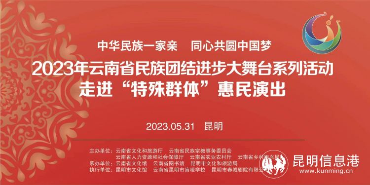 此次活动由云南省文化和旅游厅、省民族宗教事务委员会、省人力资源和社会保障厅、省农业农村厅、省乡村振兴局主办;省文化馆、省图书馆、昆明市文化和旅游局承办;昆明市文化馆、昆明市盲哑学校、昆明市春城剧院有限公司组织实施。
