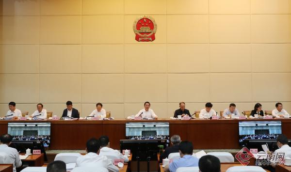 王显刚主持会议,张治礼、杨斌、王浩、郭大进、纳云德、杨洋、岳修虎出席。各州(市)、县(市、区)设分会场。(云南网 记者张寅 陈晓波)