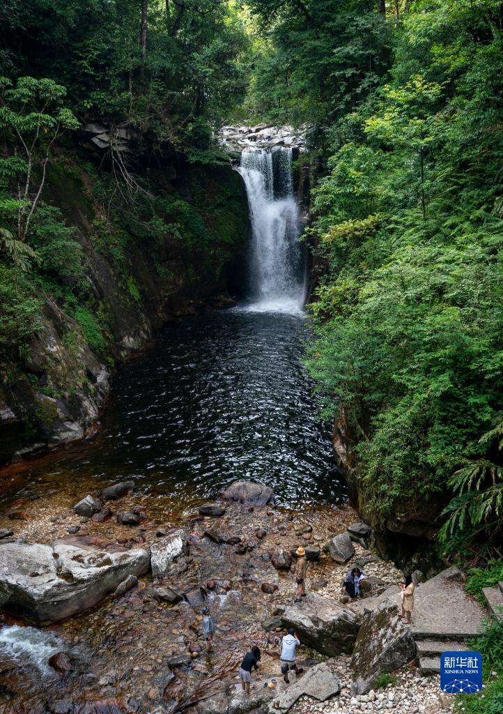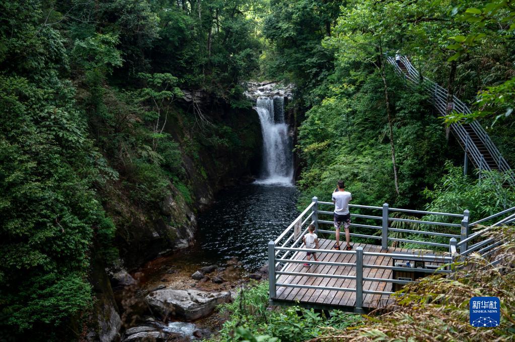 5月29日,游客在坪河草地景区一观景台拍摄瀑布。新华社记者 陈欣波/摄